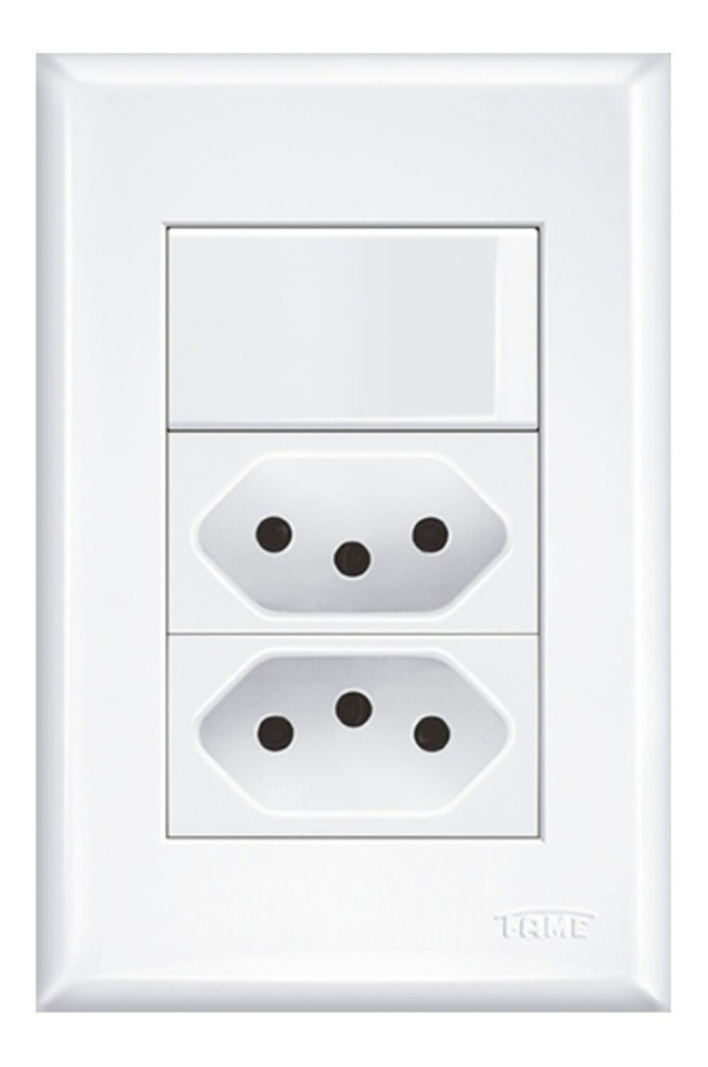 🔌 Interruptor Simples + 2 Tomadas 10A 250V – 4x2 Linha Habitat – FAME