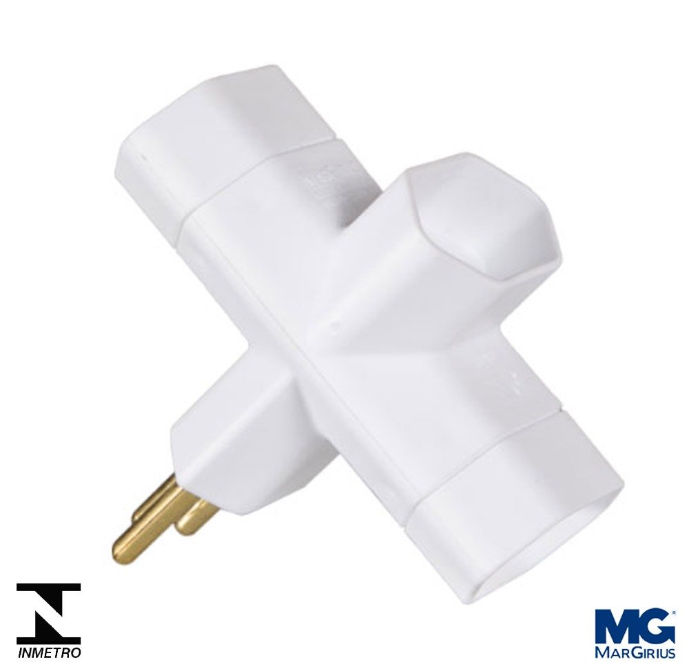 Com design compacto e corpo em material plástico resistente, na cor branca, é compatível com o padrão brasileiro de tomadas (NBR 14136) e suporta corrente de até 10 amperes. Indicado para uso residencial ou comercial.