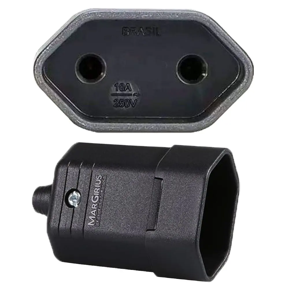 O design compacto e ergonômico facilita o manuseio e a instalação, enquanto o isolamento eficiente previne curto-circuitos e riscos elétricos. Este modelo, sem pino terra, é ideal para equipamentos que não necessitam de aterramento.