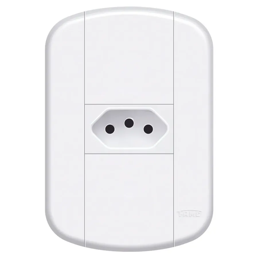 1 Tomada 2P+T 10A com placa (conjunto completo – espelho + módulo)