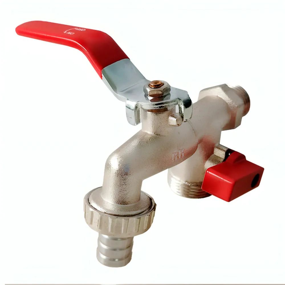 A torneira possui rosca de 1/2" nas duas extremidades (entrada e saída) e rosca de 3/4" na saída, o que a torna compatível com a maioria das mangueiras de máquina de lavar e sistemas de irrigação. Esse formato garante a versatilidade para adaptação a diferentes tipos de instalação. -